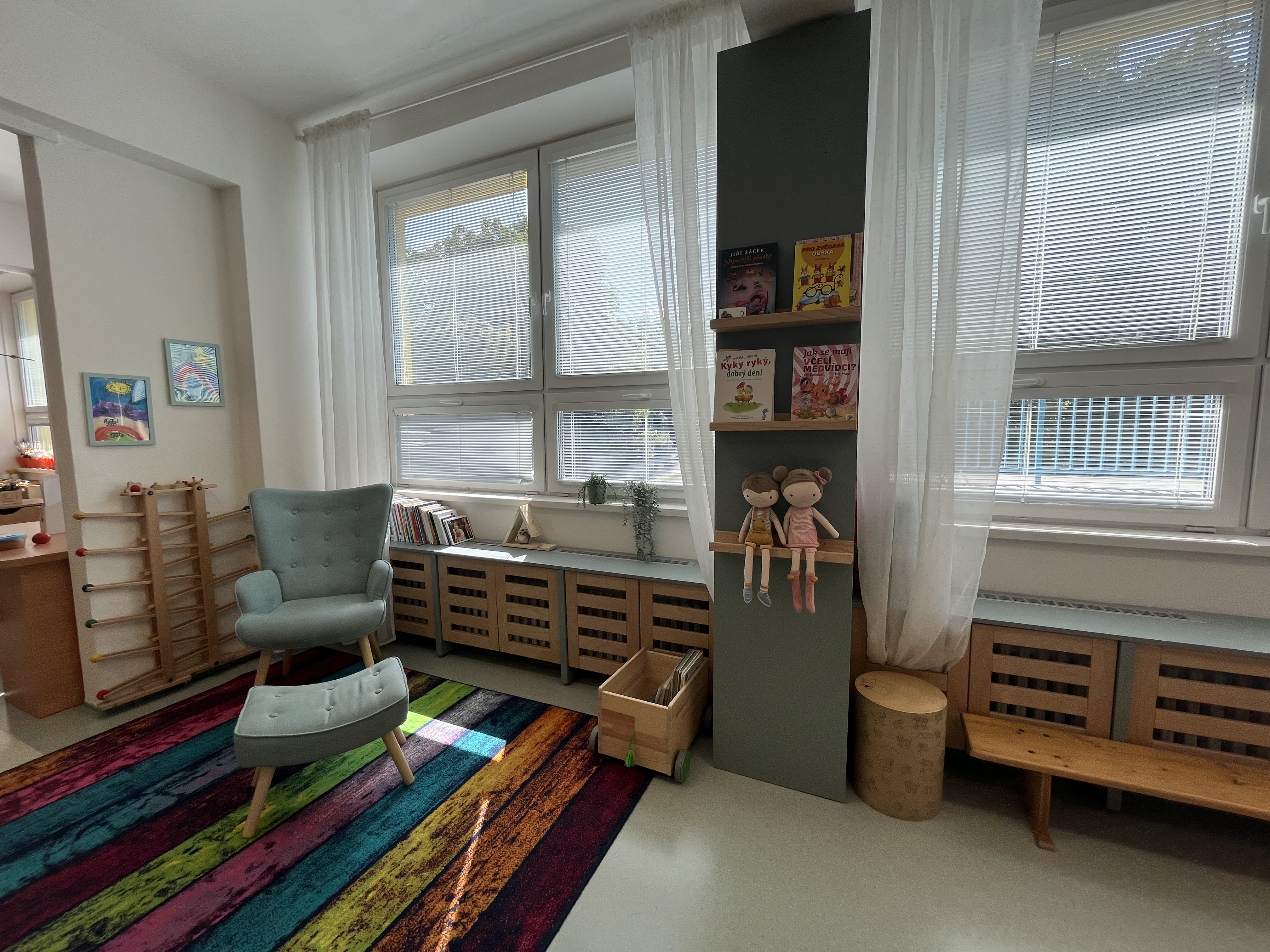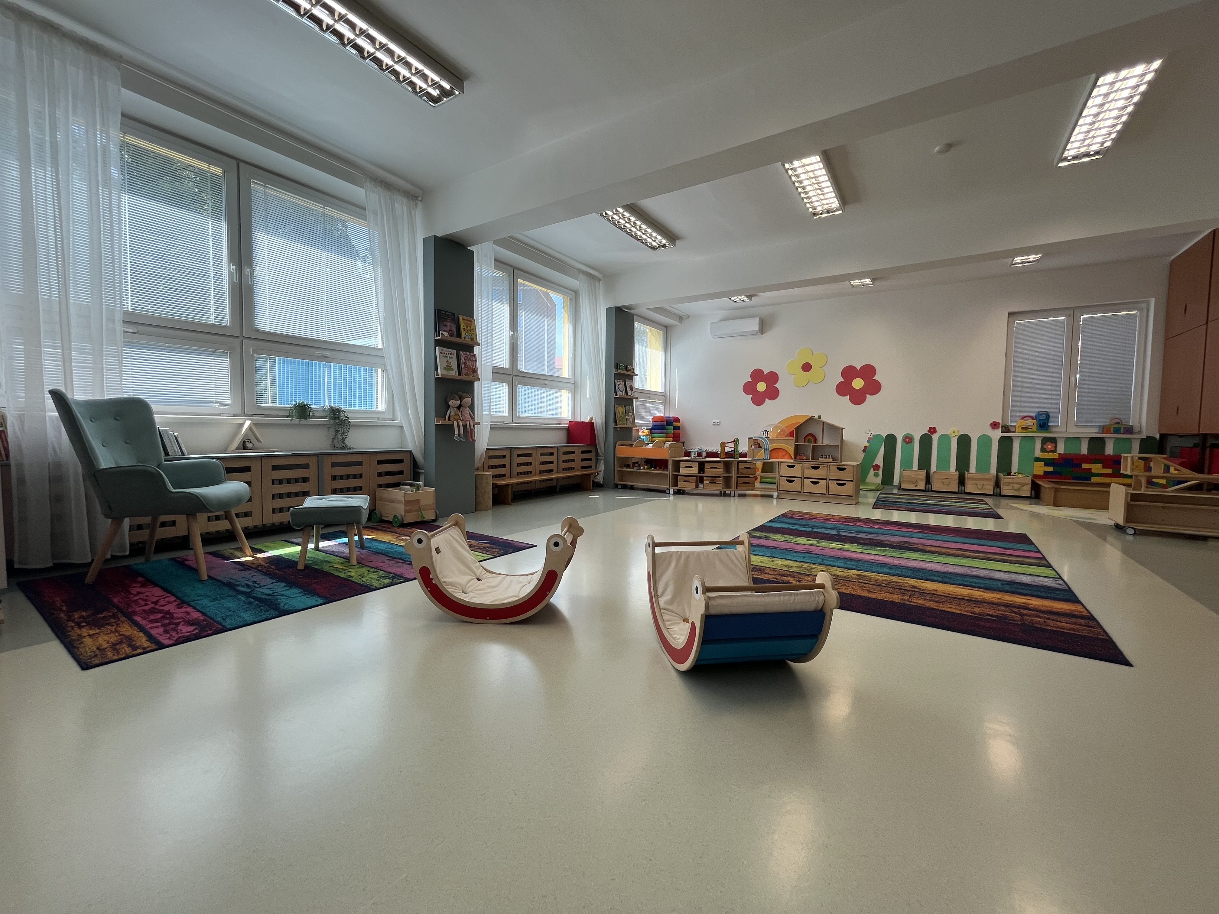 Jsme třída nejmladších dětí. Během tohoto školního roku nás budou provázet plyšoví kamarádi zajíček a myška. Pomohou nám s adaptací, setřou první slzičky a naučí nás mnoho nového. Společně nalezneme odpovědi na všetečné otázky a pomocí příběhů budeme poznávat svět kolem nás.